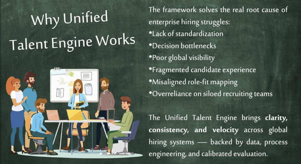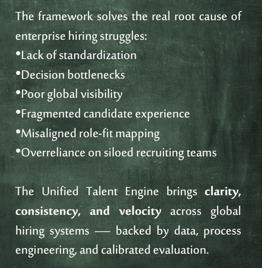 This multinational enterprise was struggling with decentralized hiring, inconsistent interviewing, long decision cycles, and rising cost-per-hire.